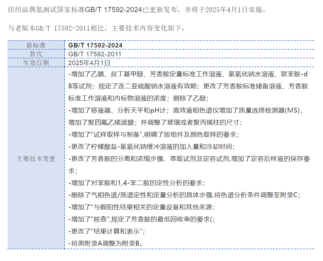 纺织品偶氮测试标准GB/T 17592-2024更新
