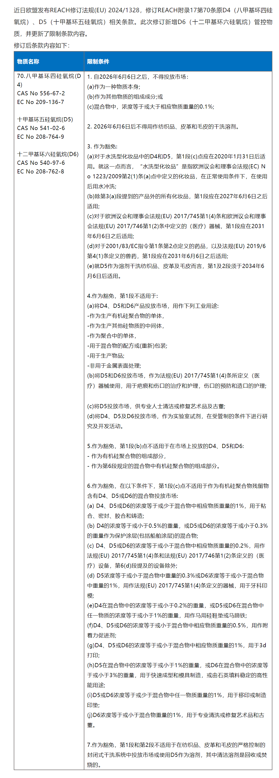REACH附录17修订D4,D5,D6限制要求