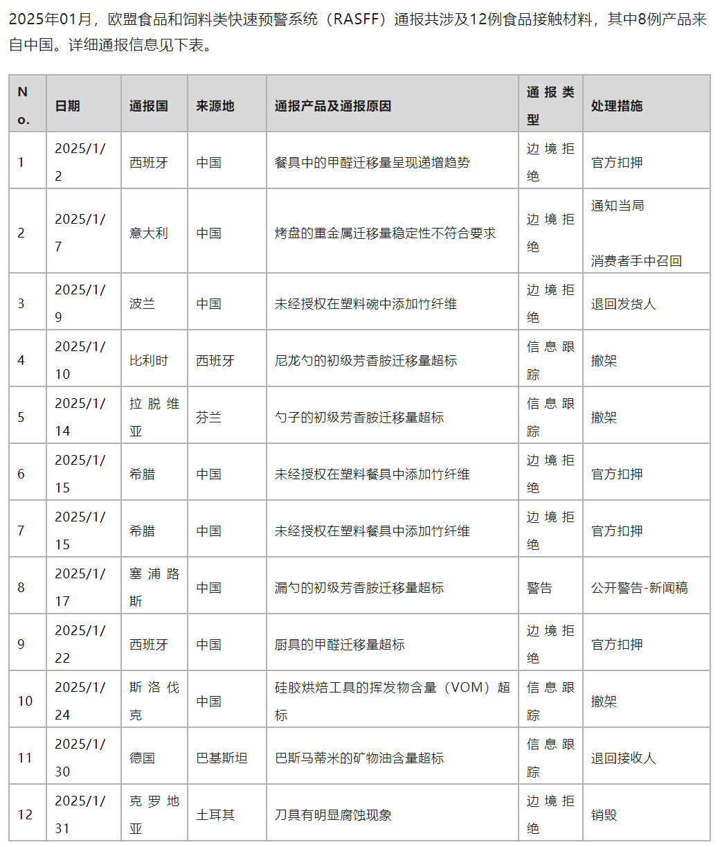 欧盟RASFF预警通报(FCM)篇--2025年1月